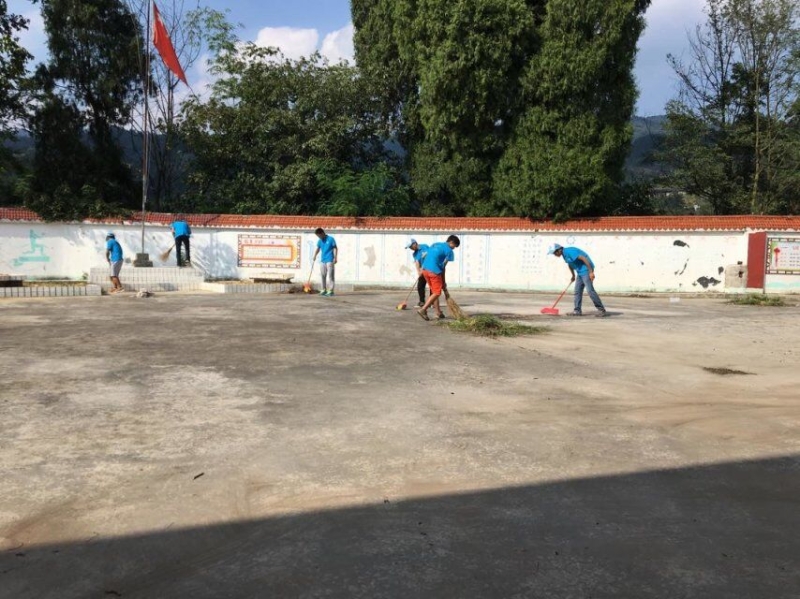 陈维老师将大家随机分组,今日的饭菜由第一小组完成,吃了早餐大家就开始忙得不亦乐乎。在学校清洁阿姨的带领下打扫校园、除草、砍树枝、冲厕所等。阳光不再有早晨的温柔,变得更加猛烈,即使是这样,我系队伍的双手和双脚并没有要一丝的停下。令我们意外的是在这个小团体中,有的看起来文文弱弱的样子,但干起活来毫不逊色,一个人要用三四天才能完成的任务,我们合伙做了一两个小时就完成,正如军歌中的歌词“团结就是力量,”一个团队只有大家的心走在一起,做起事来便能事半功倍裸露的刺在手上扎了许多也没有停止他们的热情。看见阿姨脸上满意的笑容,我们再也藏不住心中的欢喜。