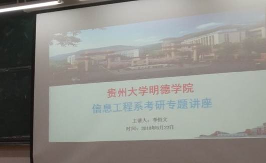2018年5月22日下午18点30分,我系在E栋307教室召开了考研专题讲座。本次讲座由董秀云老师主持,由李恒文老师主讲,我系大二同学参加了本次讲座。