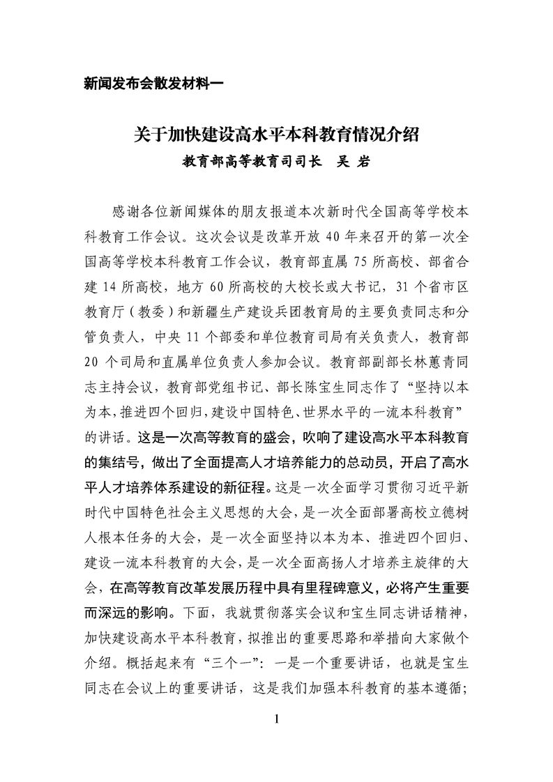 关于加快建设高水平本科教育情况介绍