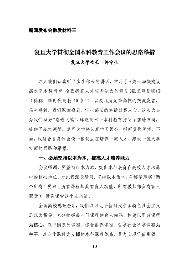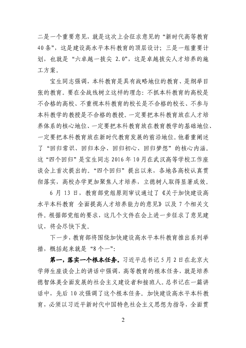 陈宝生在新时代全国高等学校本科教育工作会议上的讲话