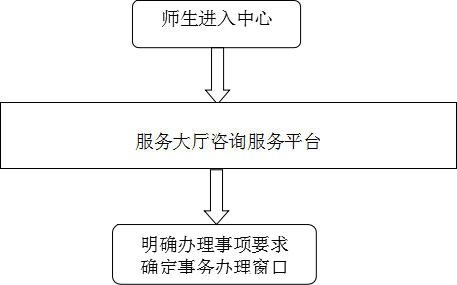 学生事务服务中心大厅设立服务台,为师生提供咨询、引导, 并将服务项目、服务内容、岗位职责上墙。学生事务服务中心实行首问责任制、监督投诉制等服务制度。坚持以规范、高效为原则,将服务与育人相结合,协调与监督相结合,提高职能部门服务质量与完善和优化中心工作体制和运行机制相结合,将中心建设成为教育的阵地、咨询的窗口、办事的平台。