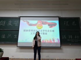 活动开始,健康管理系学生会主席王雯雪致开幕词,她表示:我们举办团组织生活评比,是希望同学们能通过实践去学习党的一些知识,我们应该大胆的挑战自己,勇敢的站上讲台,为自己和班级增加荣誉,期待今天的参赛班级带来的精彩讲解,我预祝本次活动取得圆满成功。