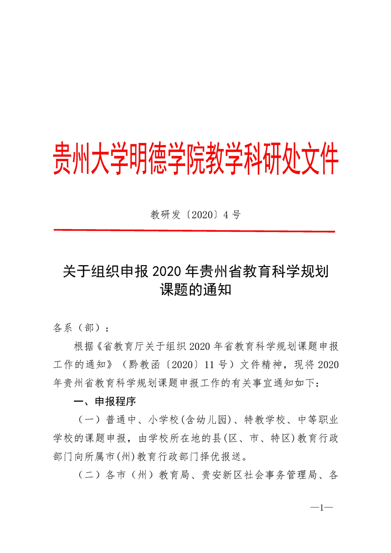 关于组织申报2020年贵州省教育科学规划课题的通知