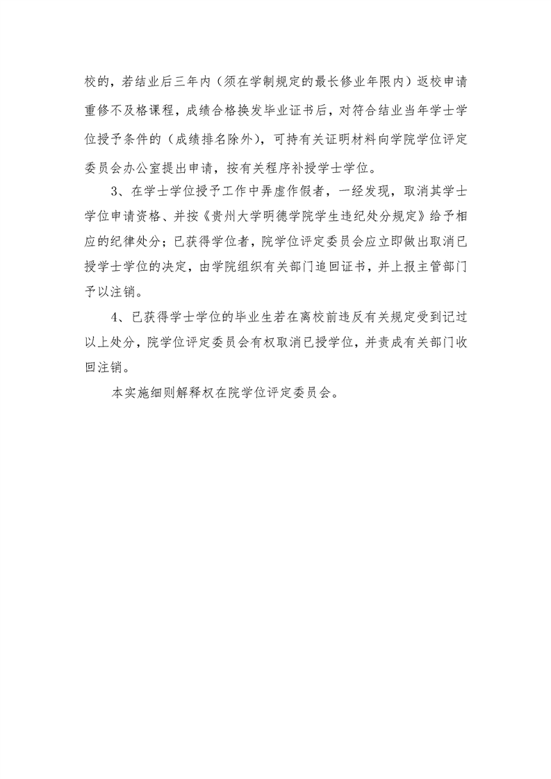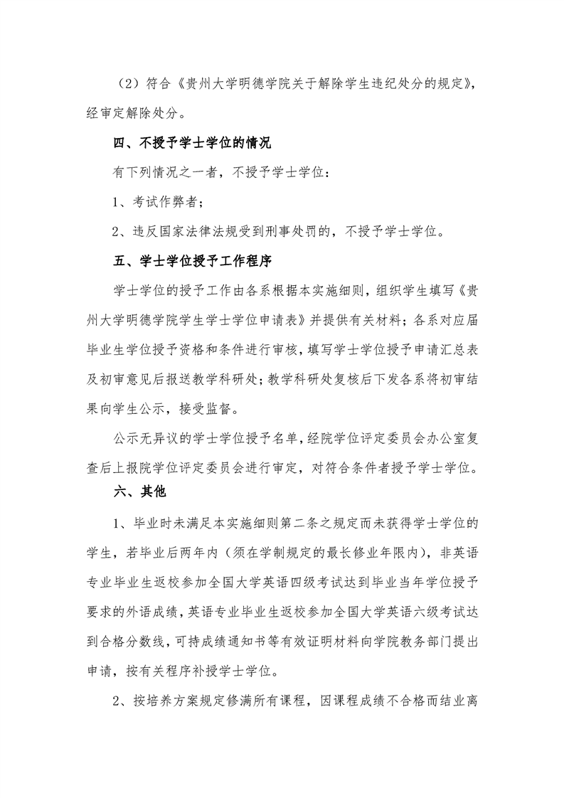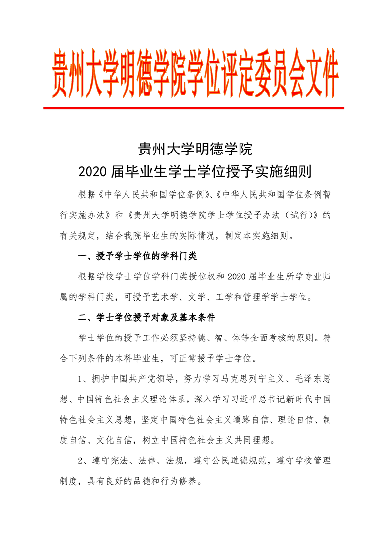 贵州大学明德学院 2020届毕业生学士学位授予实施细则