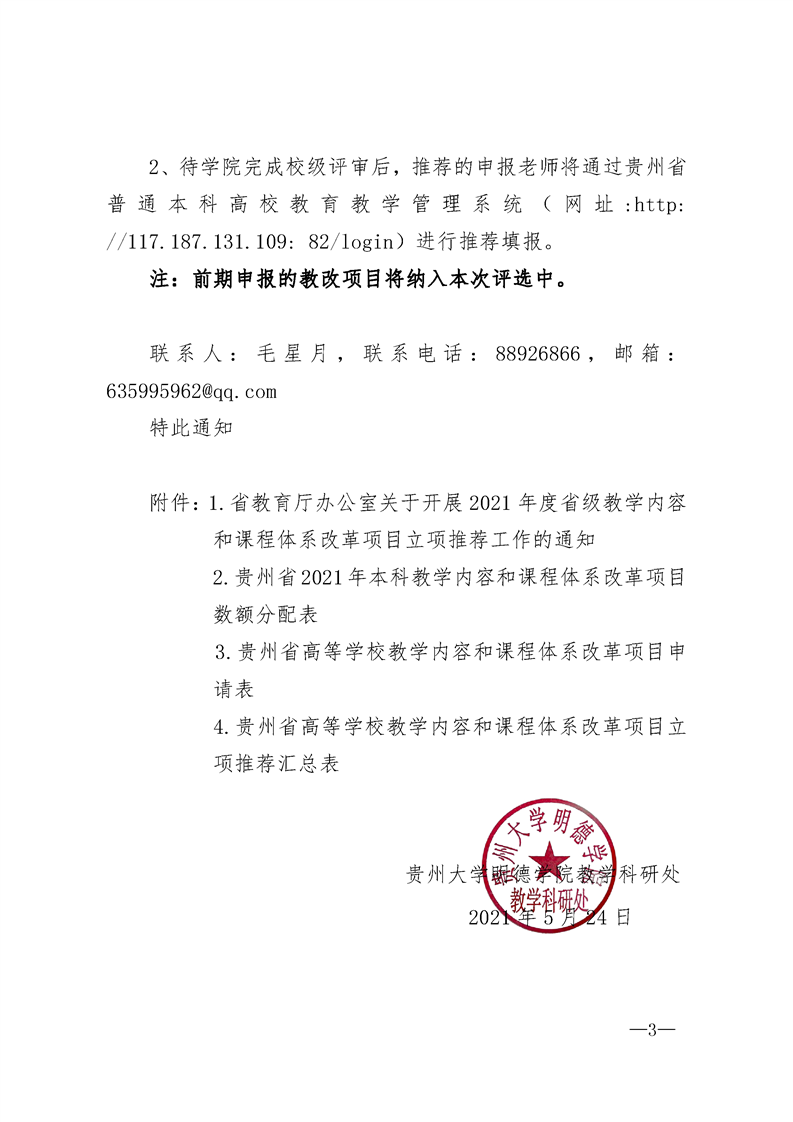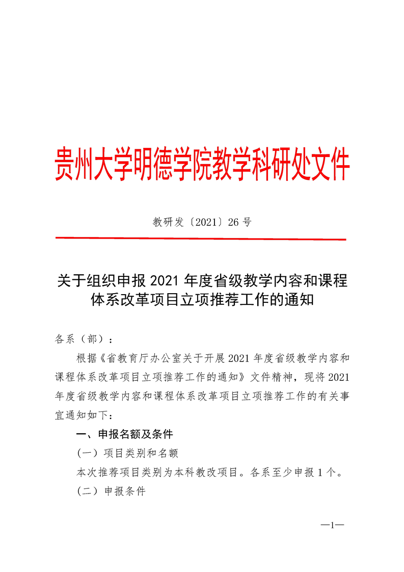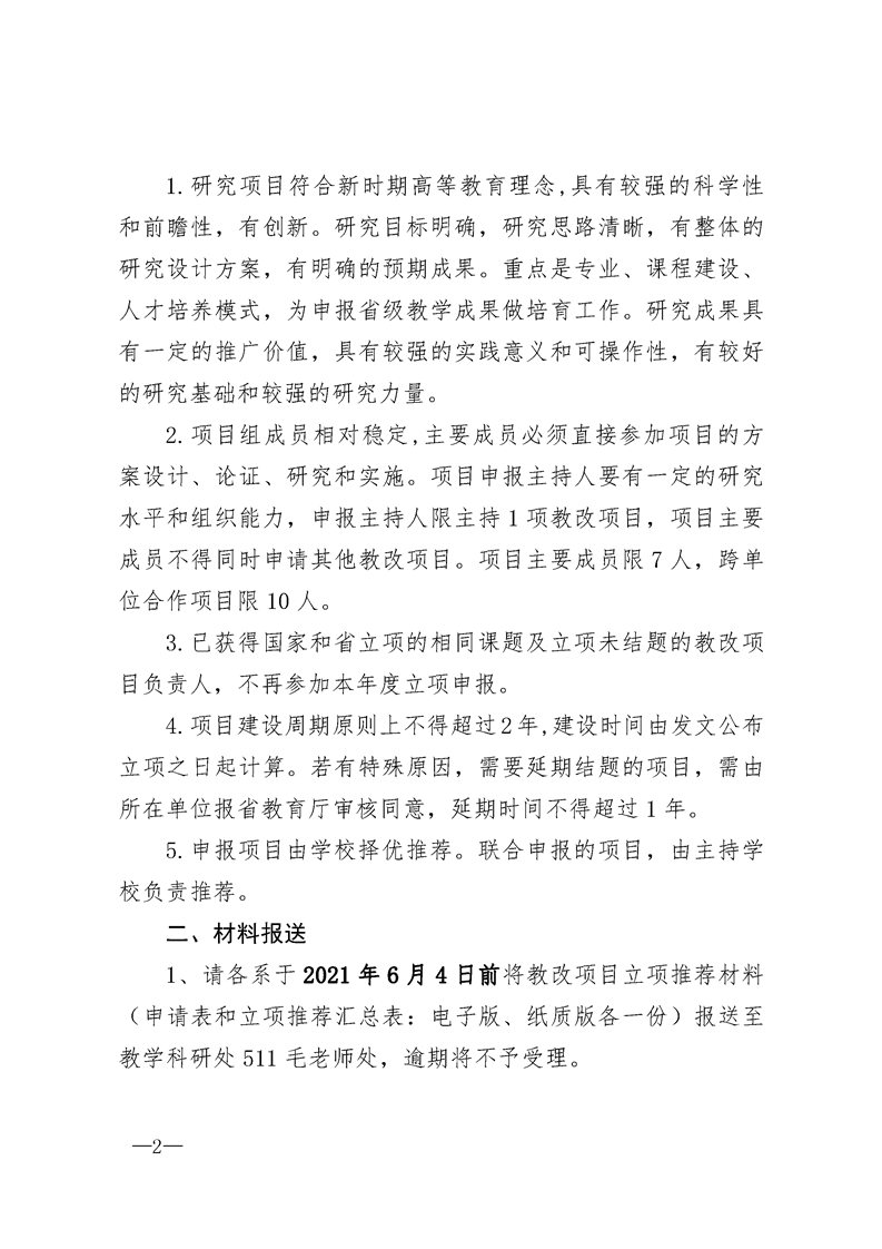 关于组织申报2021年度省级教学内容和课程体系改革项目立项推荐工作的通知