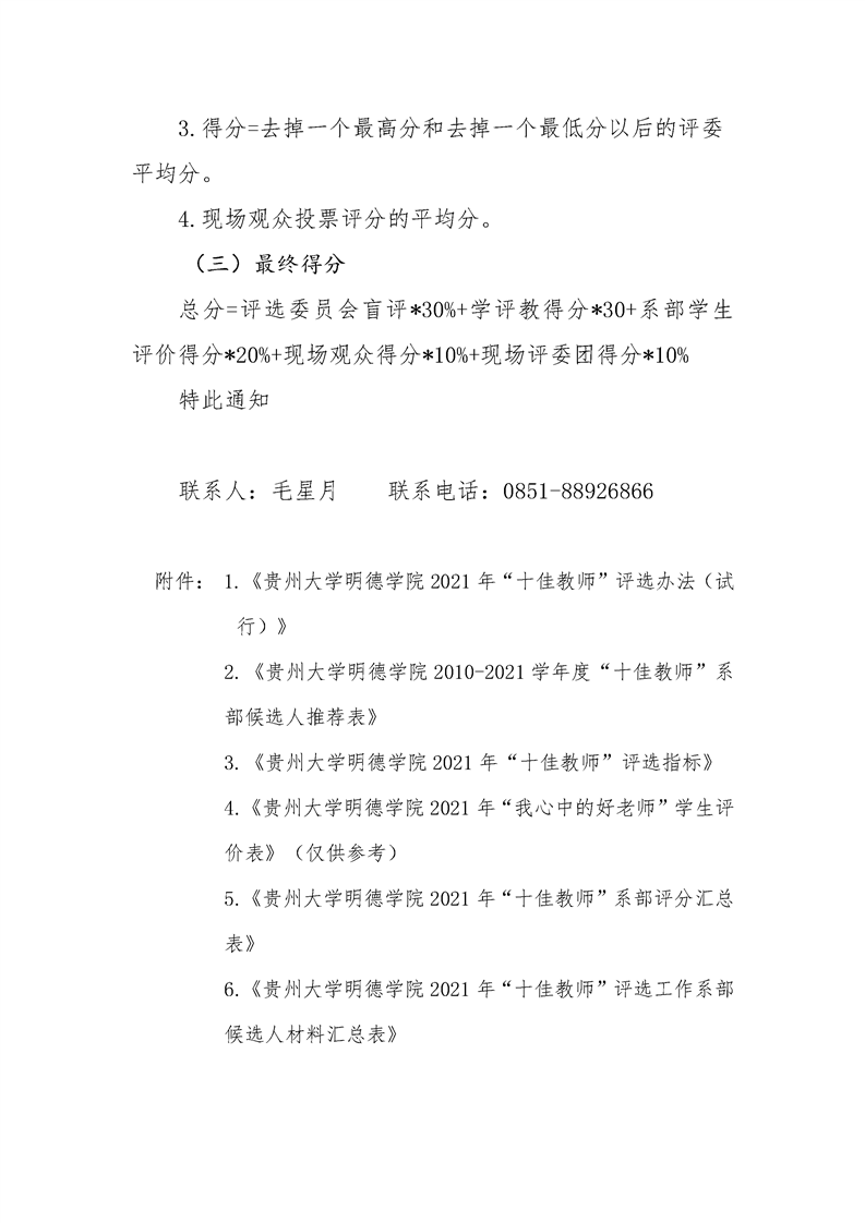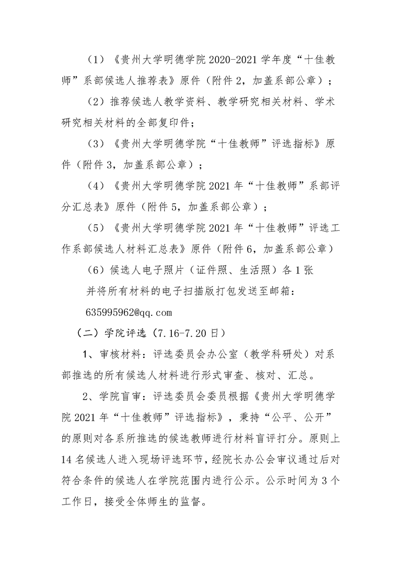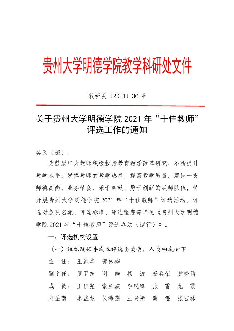 关于贵州大学明德学院2021年“十佳教师”评选工作的通知
