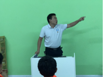 晚19:40,短暂休整后,团队组织开展了一场座谈会。本次会议由八界小学潘年贵校长进行指导,他对队员们两天以来的表现进行了赞赏并鼓励大家加油努力;紧接着,队员们轮流上台发言,表达了近两天的感想和启发。