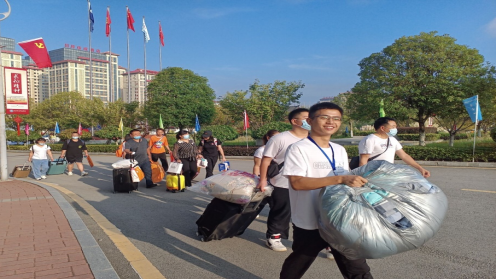 新闻网讯(供稿/杨飘 供图/王永祥)彩旗翩翩,丹桂飘香,后浪入海,以心迎新。为帮助新生顺利完成入学,2021年9月2日,在张吉林老师、郭东越老师、王紫瑞老师等老师的带领下,我系迎新志愿者于早上7点15分到E栋教学楼1楼注册点集合,学生负责人胡滔、周佳霖、王永祥安排相应工作后,志愿者分别到校门口、寝室楼、注册点等岗位迎接2021级新生。