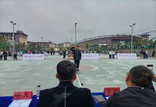 为保证赛事的公平公正性,场上进行了运动员宣誓和裁判员宣誓。运动员学生代表进行宣誓,将严格遵守比赛规则,全程服从裁判,尊重对手,尊重观众,努力进取,积极认真地面对本次篮球赛。裁判员学生代表进行宣誓,表示恪守职业道德,严格执法,公正裁判,为运动员努力打造一个欣欣向荣、优质的服务。为保证迎新杯的圆满结束,做出应有的贡献。随后,经济管理系党总支副书记朱成龙宣布活动开幕:打出贵科院精神、打出经管系精神。