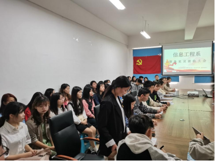 2022年5月16日星期一中午12:30,信息系学生第一党支部于信息楼A305召开中共预备党员接收大会,会议议程是讨论接收新党员。该会由信息系学生第一党支部书记谢尧同志主持,大会讨论接收蔡美红、吴一鸣、黄家俊、冯生圳、莫桥珍、陆定梅、马金涛、毛迎雪、张海丽、吴明洁10名发展对象为中共预备党员,组织委员鲁丽沙清点到会人数,参与此次会议的有26名党员同志,10名发展对象,以及66名预备党员。由于疫情和特殊原因,部分同志在线上参加。