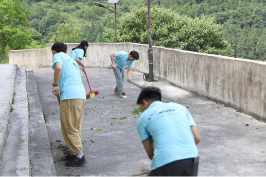 图为“三下乡”实践团队在大寨小学开展环境卫生整治