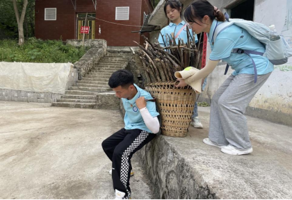 午时,顶着烈日,冒着酷暑,志愿者们干劲十足,热情高涨,继续认真清理着每个角落,为这座少数民族村落营造着干净、整洁、舒适的居住环境。部分队员走进土家族村民家中,为他们清洁家中环境,了解他们的生活现状,帮助孤寡老人砍拾柴火······