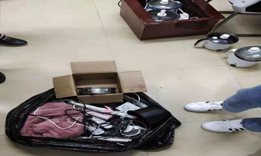 安全排查小组进入学生公寓,检查学生寝室内是否存在违规使用电器如电饭锅、电热毯、电暖炉、电老虎、电热壶等大功率 危险电器,一经查到立即没收,并对其使用同学进行安全用电教育,说明其危险性,提高学生的安全用电意识,消除藏在寝室内的安全隐患。