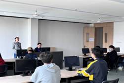 三、四楼阅览区及电子阅览室介绍。阅览区了解结束后组织学生到四楼电子阅览室,由何正直老师带领助管介绍四楼基本情况(包含电子阅览室、四楼主藏图书类别、图书馆设备设施),其中着重介绍电子资源(电子书、数据库)的使用方法,以帮助学生快速完成电子资源的查阅和下载。