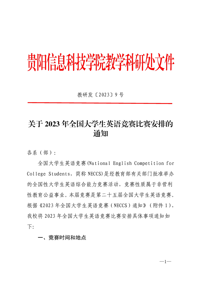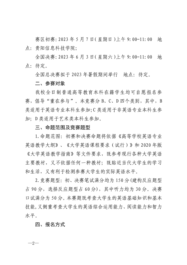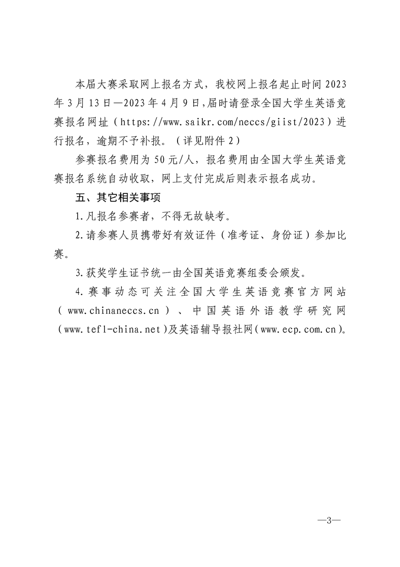 关于2023年全国大学生英语竞赛比赛安排的通知