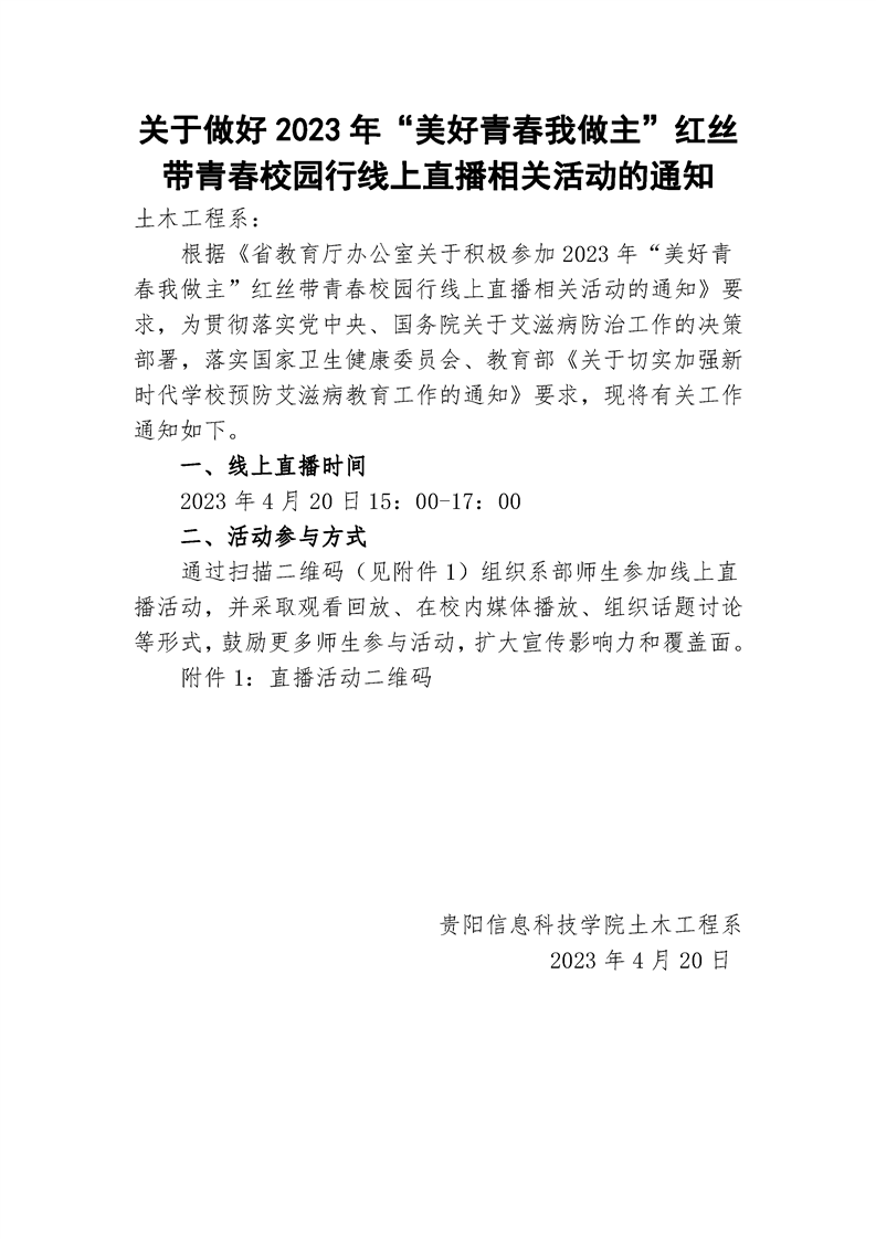 关于做好2023年“美好青春我做主”红丝带青春校园行线上直播相关活动的通知