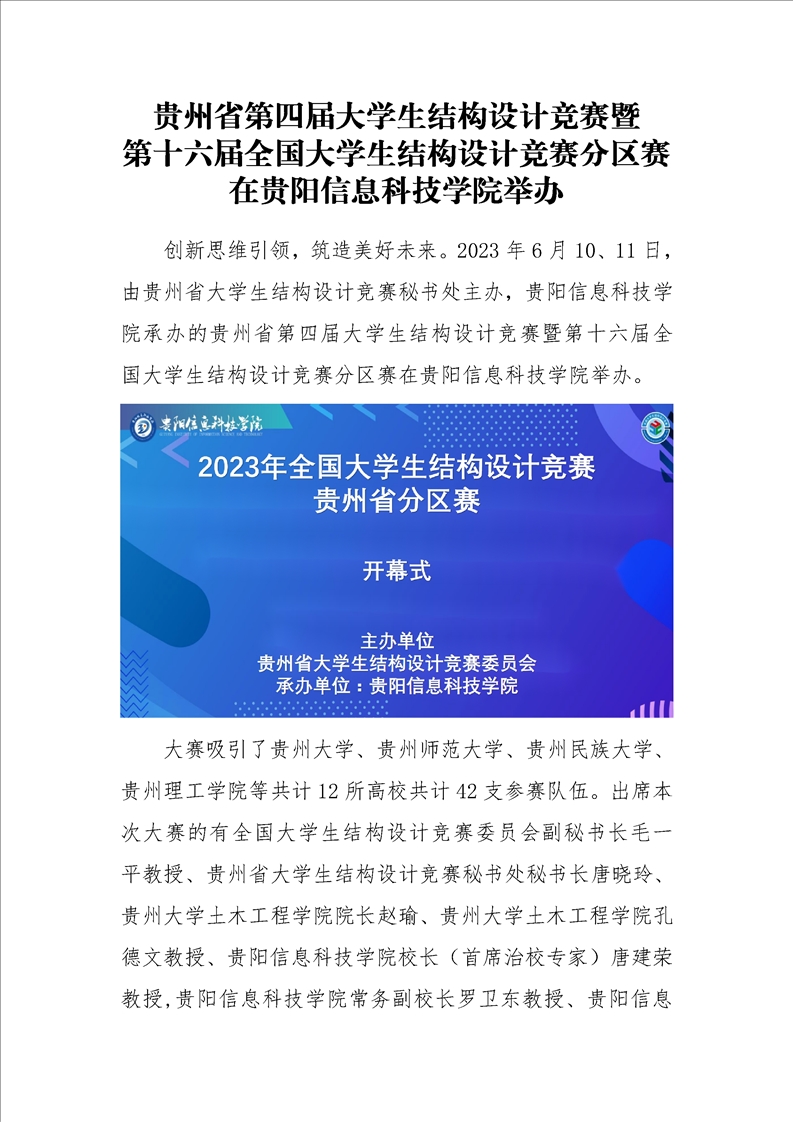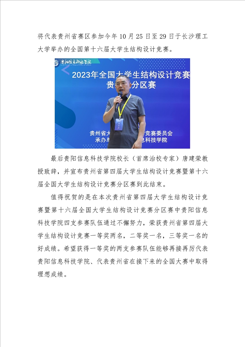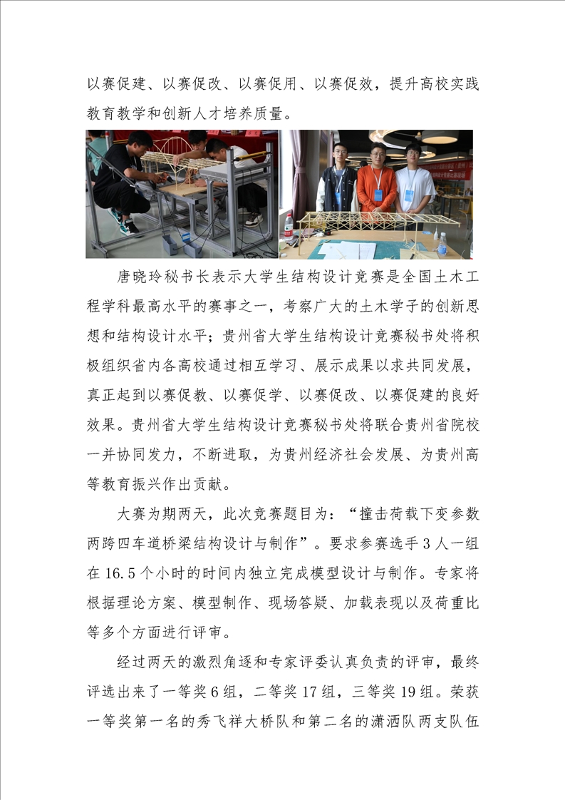 贵州省第四届大学生结构设计竞赛暨 第十六届全国大学生结构设计竞赛分区赛