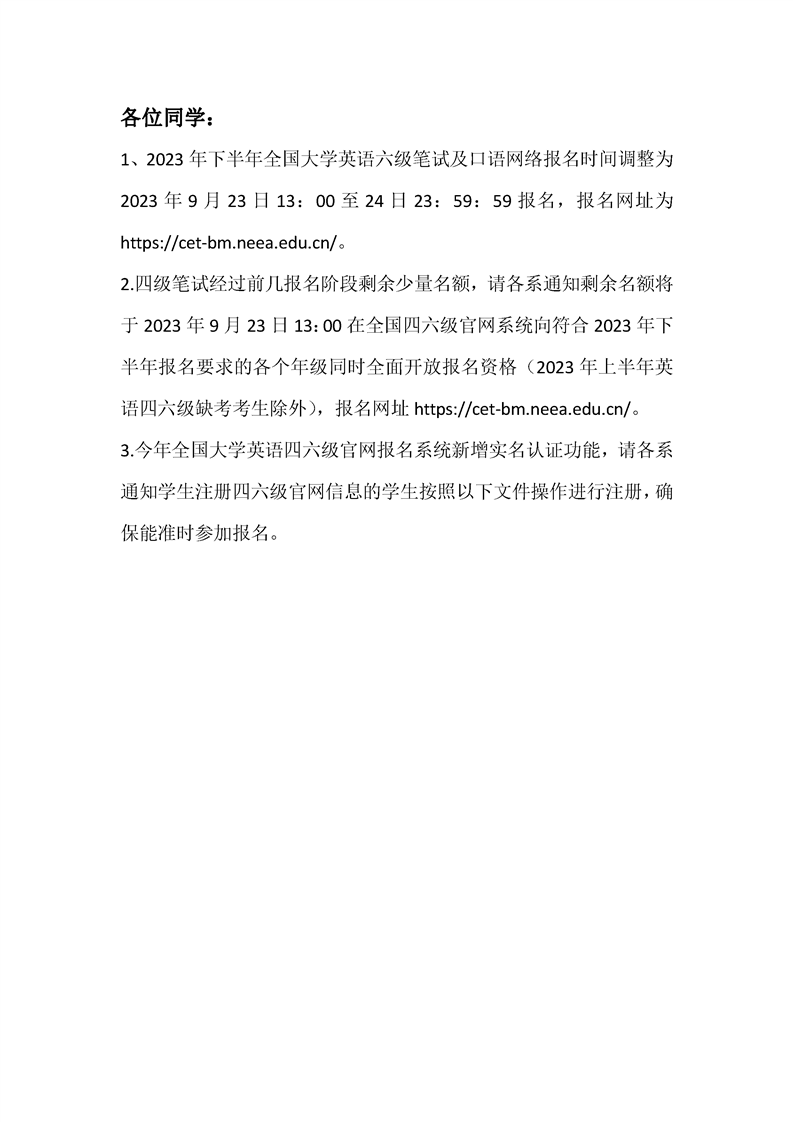 关于做好 2023 年下半年全国大学英语(日语)四、六级考试报名工作的通知