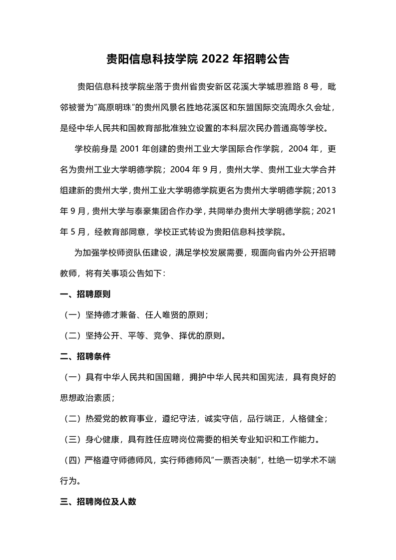 贵州大学明德学院2021年招聘公告