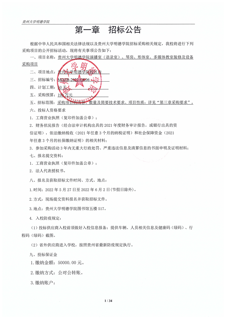 演播室、琴房教室装修工程招标公告
