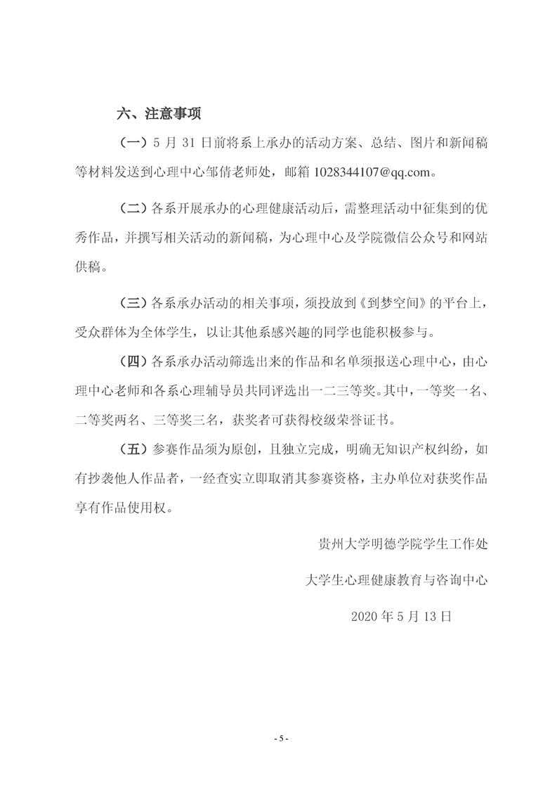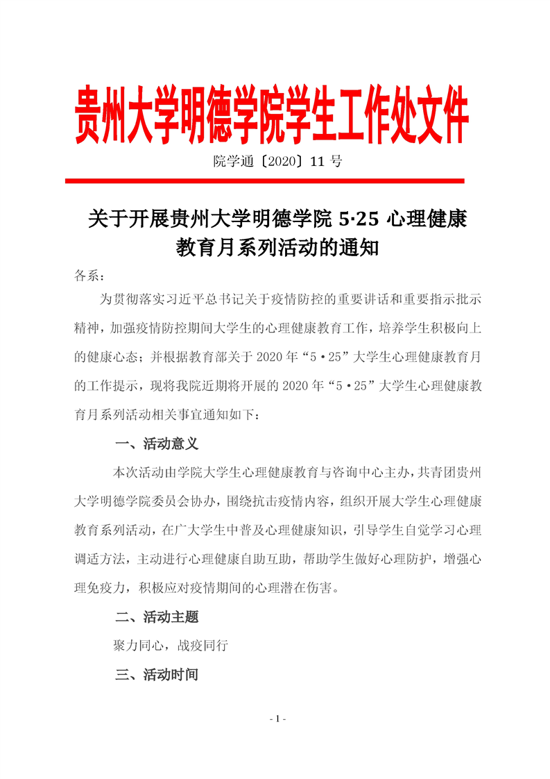 关于开展贵州大学明德学院5·25心理健康教育月系列活动的通知