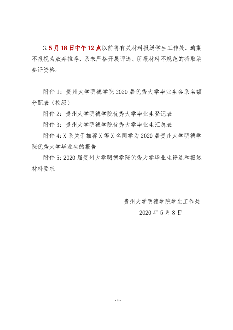 关于评选2020届贵州大学明德学院优秀大学毕业生的通知