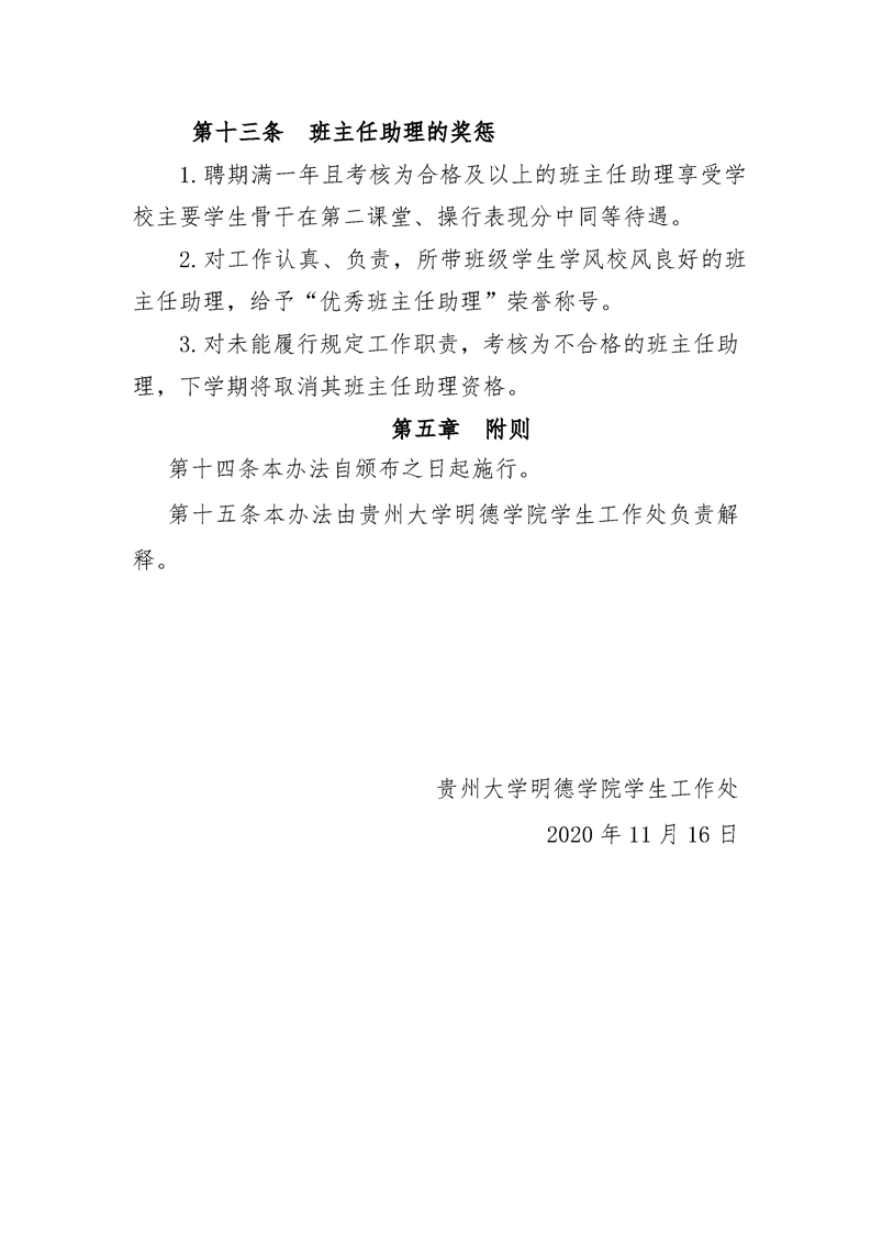 贵州大学明德学院助理班主任管理办法(试行)