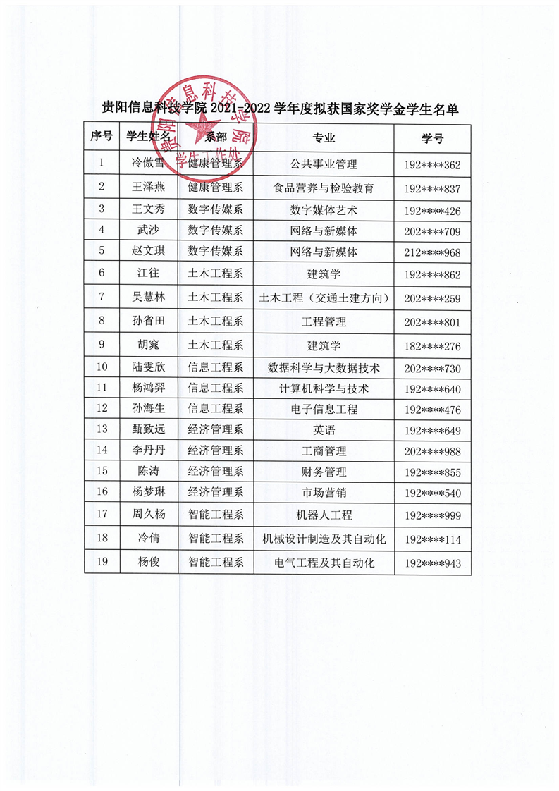 beat365中文官方网站关于2021-2022学年度拟获国家奖学金学生名单公示