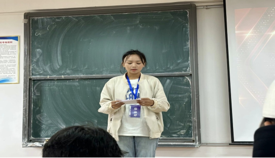 (图2为学生会纪检部部门负责人罗舒琪同学作十一 月工作汇报)