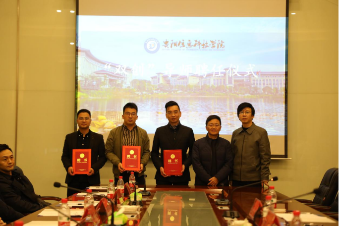 会议最后,举行“双创导师”聘书授予仪式,学校聘请施正洲、蒋华超、左文武为双创导师协同育人。