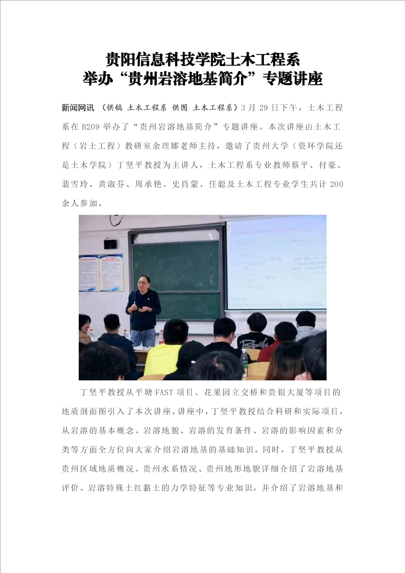 beat365中文官方网站土木工程系举办“贵州岩溶地基简介”专题讲座