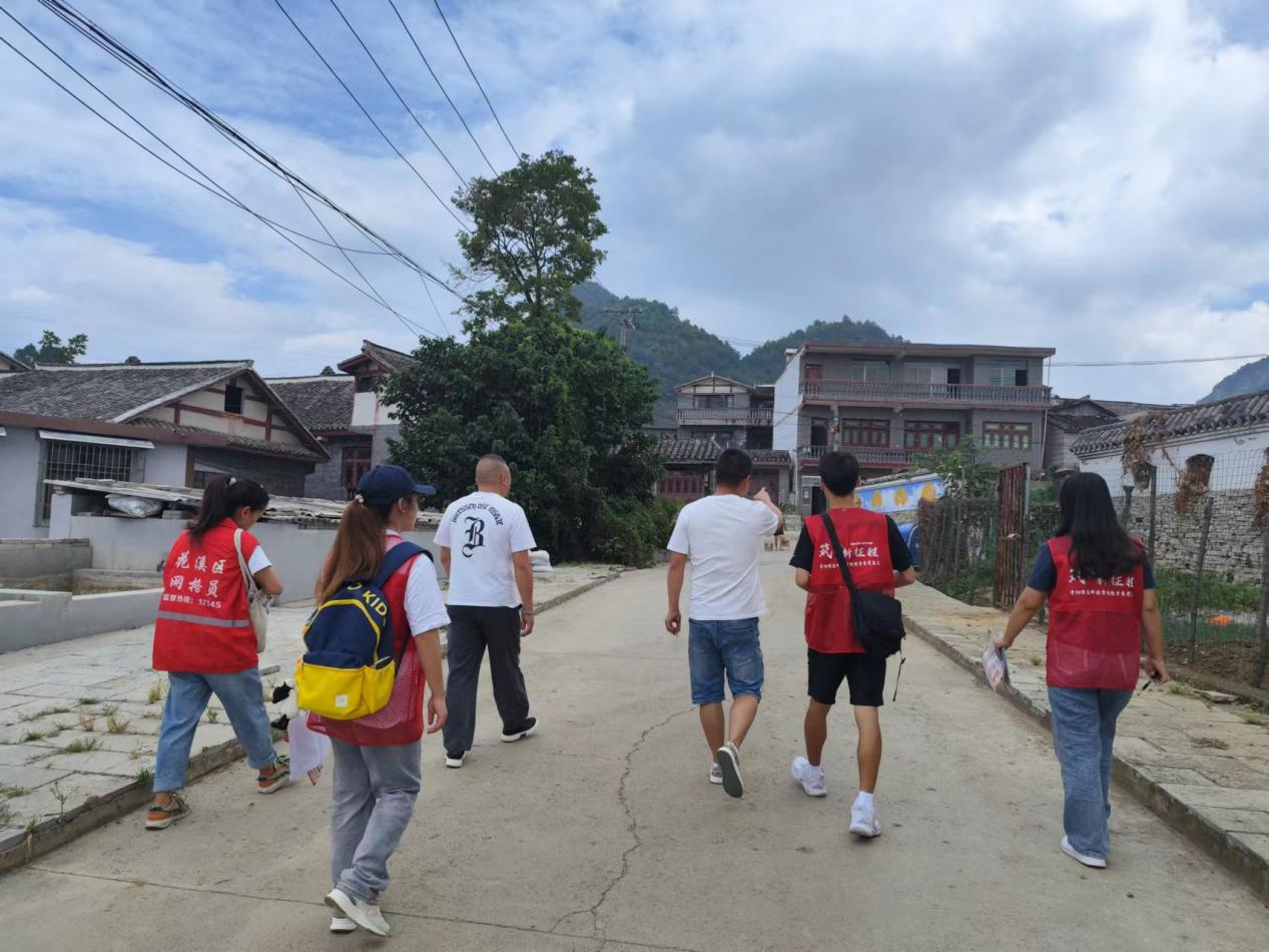 (图为徐晶书记带领志愿者们前往村民居住地宣讲)