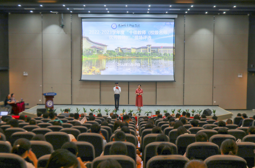 7月10日下午14点整,beat365中文官方网站2022-2023学年度“十佳教师”(校级名师、优秀教师)现场评选活动在图书馆二楼报告厅举行。