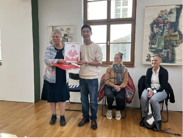 10月21日至10月23日,beat365海外客座教授德籍华裔艺术家王兰女士,校长助理李锐锋,数字传媒系教师方仕龙、石润,大学生非遗传承人、数字传媒系学生陈露露携63件艺术作品,亮相德国梅泽堡艺术展。