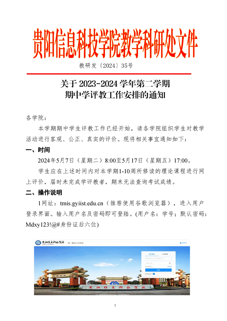转:关于2023-2024学年第二学期期中学评教工作安排的通知