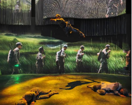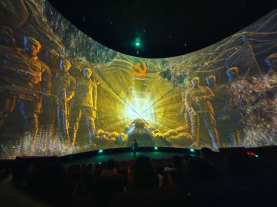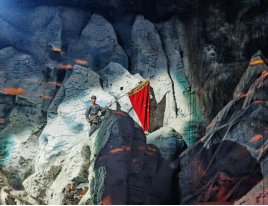 随着印有红色五角星的大门缓缓打开,党员同志们入场馆,开启了一场数字化长征之旅。红飘带场馆内在还原历史的基础上,还通过AI虚拟交互、全息影像、三维声场等科技手段,让同志们沉浸式穿行在《伟大征程》展区的“无名英雄”“血火洗礼”“伟大转折”“砥砺征途”“胜利丰碑”“新时代、新长征”六个篇章中。尤其在“四渡赤水”“血战湘江”等经典革命历史事件的演绎中,体现了长征战士们不怕牺牲、英勇无畏的精神。