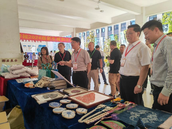 江西文演集团党委委员、副总经理柯亨龙,贵州省教育厅民办高校党组织书记、学校党委书记邓维实、学校校长唐建荣等一行校领导和院领导也亲临现场指导迎新工作,并参观土木有未手工社学生创意作品和扎染体验区,对土木学子的创意作品表示极大认可。各级领导亲临土木工程学院迎新现场,为我院增光添彩,也为新生们的到来保驾护航。