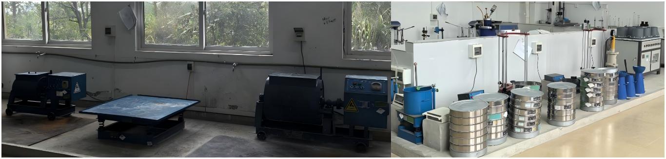 该实验室主要设备:水泥净浆搅拌机、水泥胶砂搅拌机、水泥胶砂振实台、全自动水泥抗折抗压试验机、维卡仪、沸煮箱、恒温恒湿养护箱等检测设备。该实验室开出的主要课程实验有:(1)水泥凝结时间、安定性实验;(2)水泥胶砂强度实验;(3)水泥细度实验等相关实验。