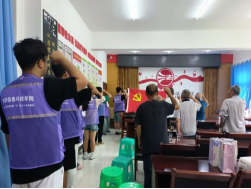 座谈会接近尾声,由王笑队长带领的10名实践队队员与老党员们在鲜红的党旗下,举起右手,紧握拳头,重温了入党誓词。“我志愿加入中国共产党……”,每一个字都像经过时间淬炼的钢铁,铿锵有力,掷地有声。这不仅是对过去的回顾,更是对未来的承诺,是对党和人民的无限忠诚和热爱。