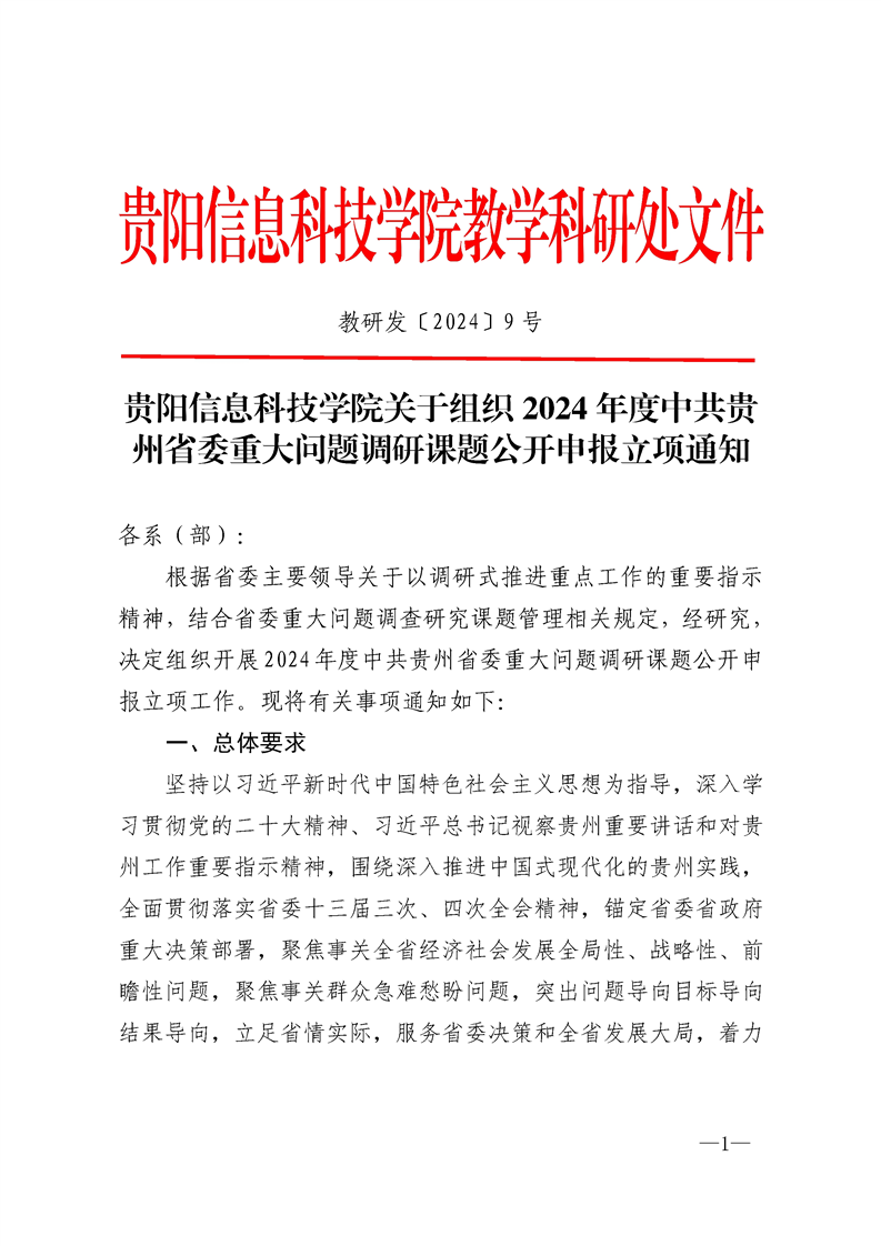 beat365中文官方网站关于组织2024年度中共贵州省委重大问题调研课题公开申报立项通知