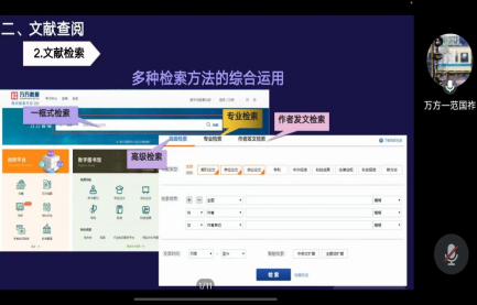 讲座开始,范国祚老师首先从万方选题,文献查阅,论文写作等方面详细介绍了如何利用万方数据平台进行文献检索、筛选和阅读。其次范老师为帮助同学们更好的了解资料的查找,他通过实际案例,展示了如何利用该平台的高级检索功能,快速找到自己所需文献。同时,还介绍了如何对检索到的文献进行分析和整理,为论文写作提供有力的支持。