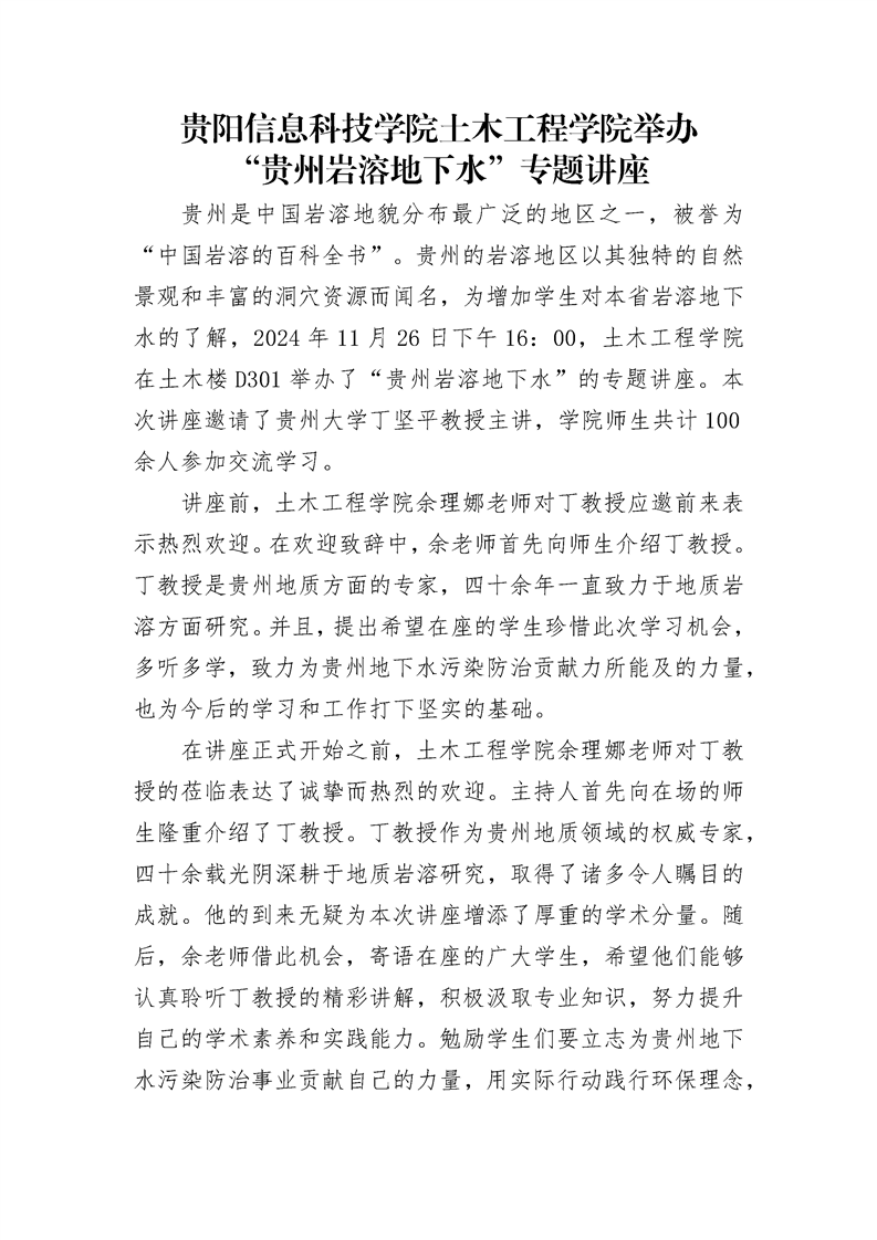 beat365中文官方网站土木工程学院举办 “贵州岩溶地下水”专题讲座
