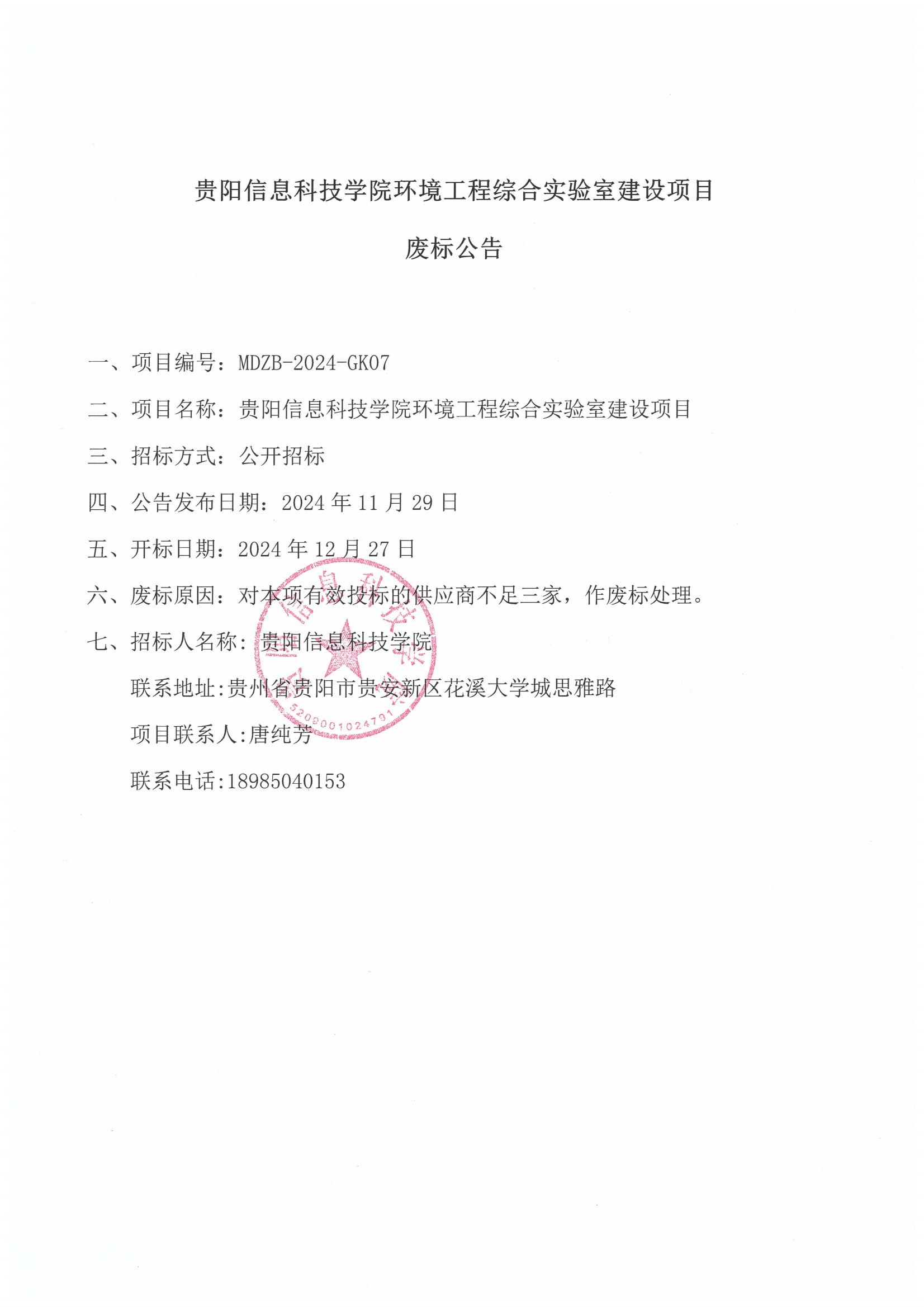 beat365中文官方网站环境工程综合实验室建设项目废标公告.pdf