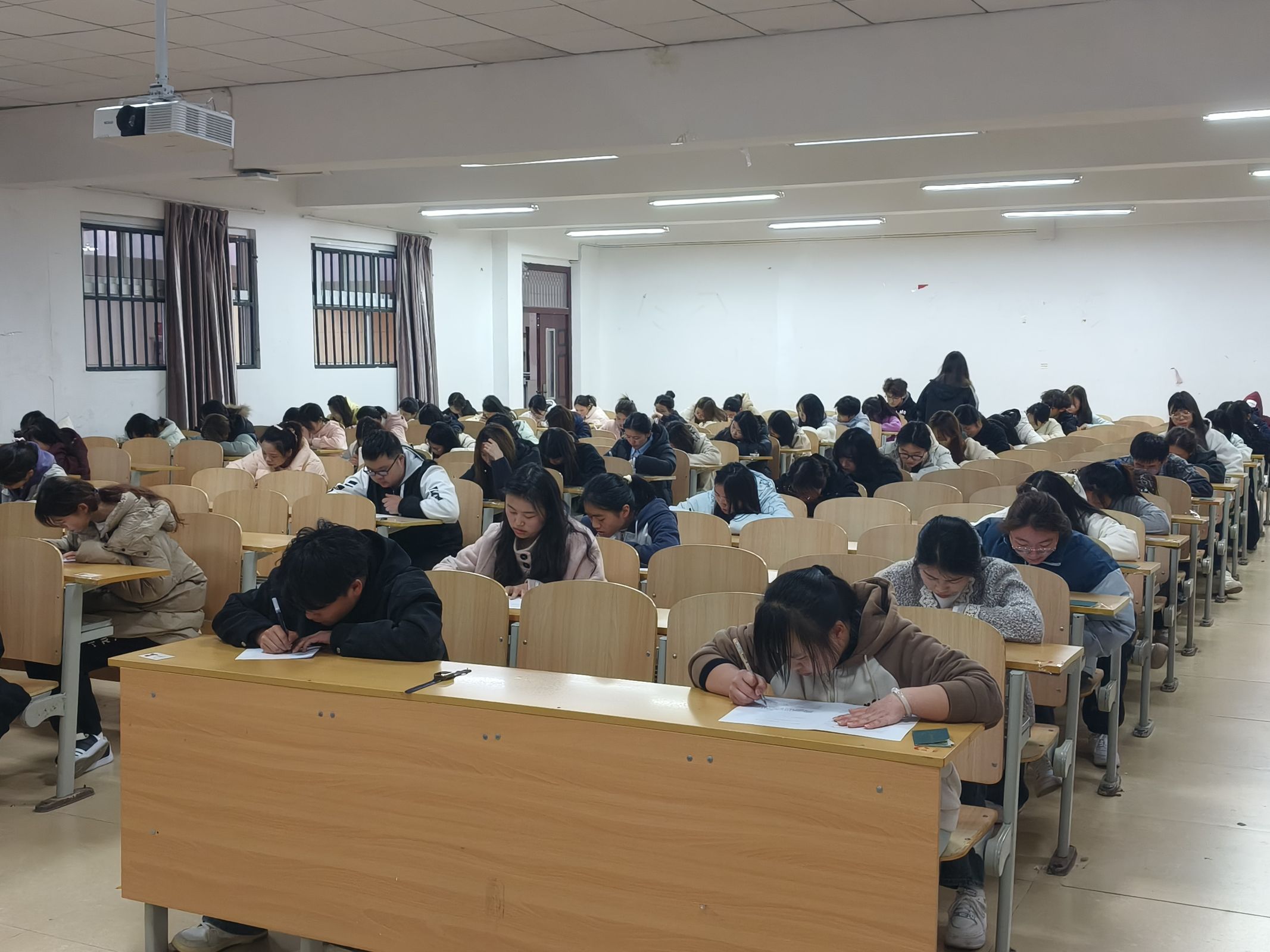 最后,为检验经济管理学院“青马工程”团课培训成效,夯实学员的政治素养与理论功底,学院组织全体学员进行了现场测试。本次测试题型丰富,涵盖选择、简答和论述,全面考查学员对经典理论和时政热点的掌握程度,实现以考促学、以考促用、以考促能。