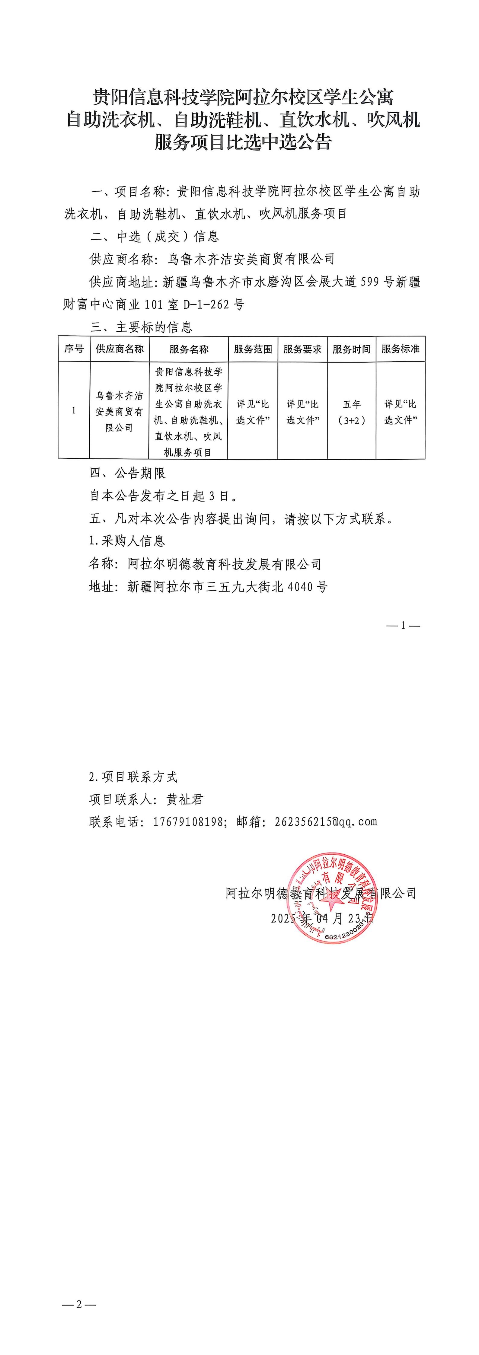 beat365中文官方网站阿拉尔校区学生公寓自助洗衣机、自助洗鞋机、直饮水机、吹风机服务项目比选中选公告