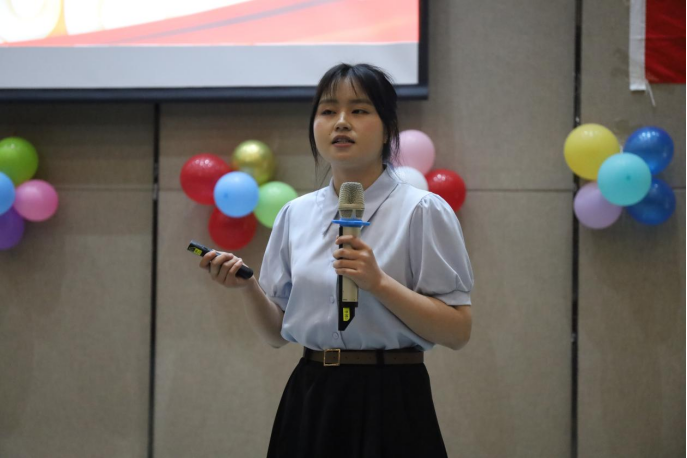 分享环节成为本次活动的高光时刻。8 名优秀毕业生党员依次走上讲台,结合自身丰富经历,为师生们带来了一场精彩绝伦的奋斗故事分享。罗文飘以“信念与坚持”为主题,生动讲述了自己在学术研究与社会实践中突破重重困难、不断成长的历程,展现了执着追求真理的精神;杨锋从团队协作的视角出发,分享了实习创业过程中的宝贵心得,深刻阐述了党员身份对自我提升的强大激励作用;朱婷婷结合会计专业竞赛经历,以自身感悟阐释了严谨细致的工作态度在专业领域的重要性;陈冲冲则展示了志愿服务与电商助农实践的丰硕成果,用实际行动诠释了青年党员的社会担当。此外,胡乐娟、肖玉佳、刘宇欣、徐海浪等毕业生党员也分别围绕初心坚守、志愿服务等主题,分享了各自的成长感悟与心路历程,他们的精彩分享激励着在场每一位同学勇于追梦、砥砺前行。