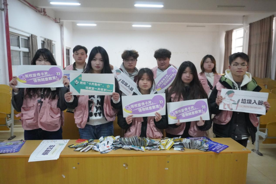 针对教室纸屑堆角、卡片遍地的情况,学生会成员化身“环境卫士”,进入传媒楼教室打扫卫生。对课桌缝隙、窗台边角堆积的驾校宣传卡片进行清除,同学们蹲身细查,用手将卡片捡起;对散落的饮料瓶、零食袋进行分类回收,通过同学们的悉心打扫、教室迎来了崭新的面貌。此次参与活动的同学们共收集300余张,同学们纷纷感慨道:焕然一新的教室真是令人耳目一新!