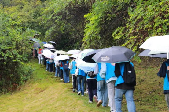 雨天山路湿滑难行,志愿者们互相照应,及时提醒注意脚下安全。虽然衣服被雨水打湿,鞋子沾满泥土,但看着山林逐渐变得干净,大家心中都充满喜悦。
