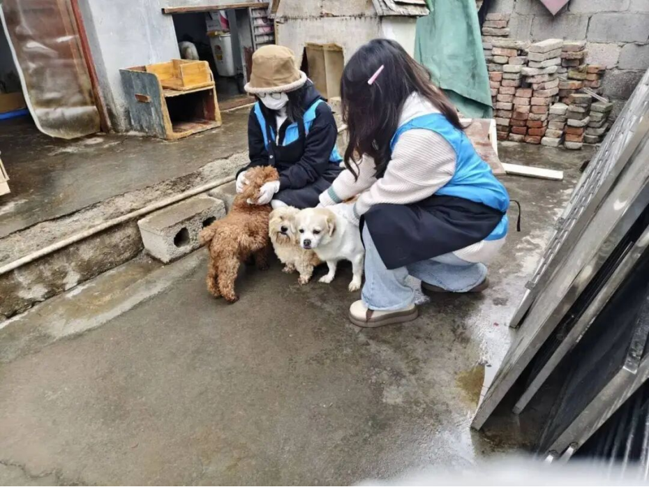 环境收拾利落后,温馨互动秀就开场了。志愿者们给“毛孩”们顺毛、投喂,陪它们在院落里你追我赶,玩得十分欢快;有的“毛孩”刚开始还有点怯生生,被志愿者轻声一哄就卸下心防,主动跳进怀里撒娇,有的则守着新窝不肯挪窝,时不时探头好奇张望。