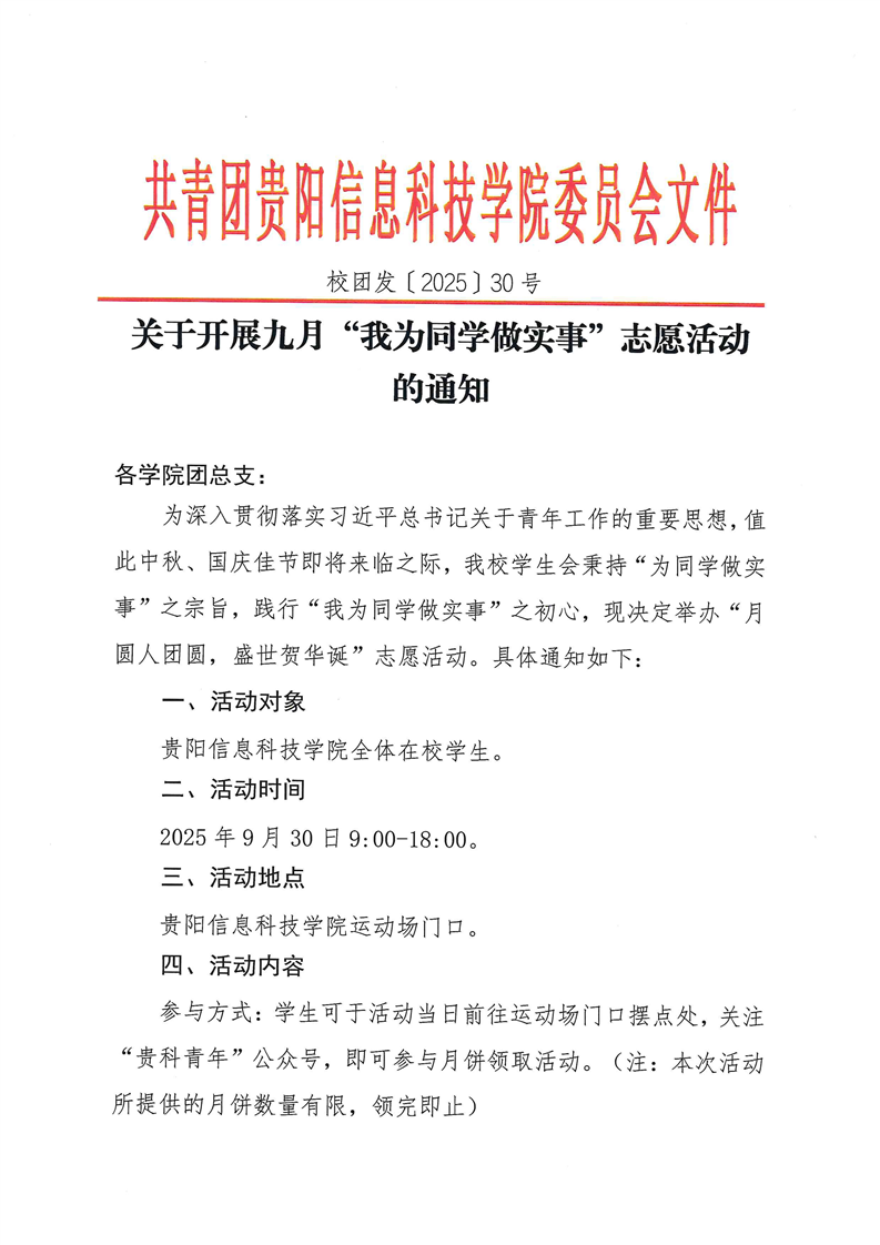关于开展九月“我为同学做实事”志愿活动的通知